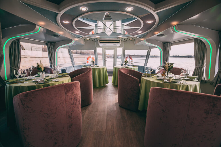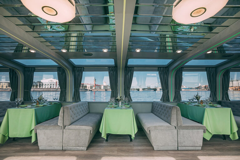Уникальное пассажирское судно в Петербурге, работающее на сжиженном газе. Пассажировместимость 176 гостей. Комфортно вмещает до 165 человек в формате фуршета и до 120 гостей при банкетной рассадк...